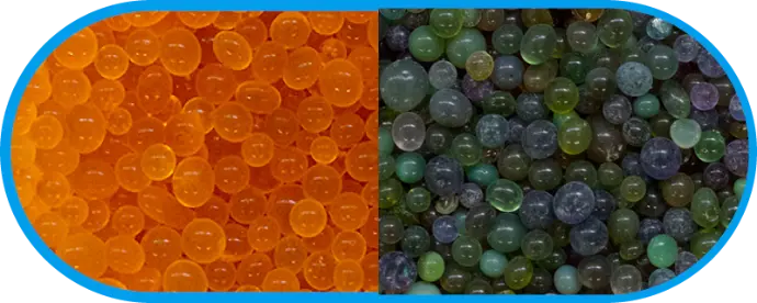 Dies ist auf den im Silikagel enthaltenen pH-Indikator zurückzuführen, der in saurer Umgebung orange und in alkalischer Umgebung grün erscheint. Mit zunehmender Wasseraufnahme steigt der pH-Wert an und löst den Farbwechsel aus.